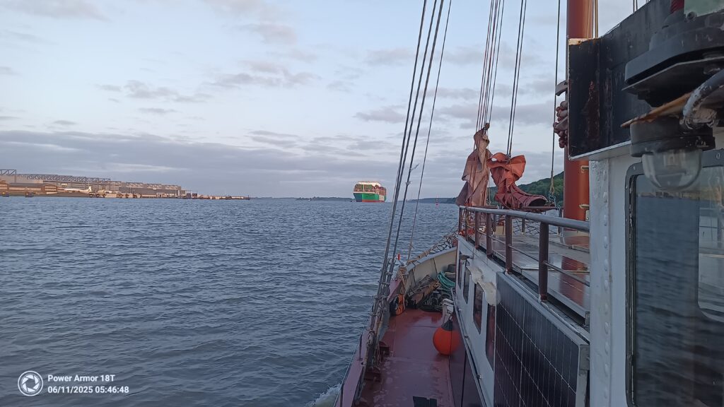 Danke an Herrn Sesemann, der am 22.9.2019 irgendwo auf der Förde ein Foto von uns geschossen hat und das freundlicherweise bei Marinetraffic veröffentlichte.