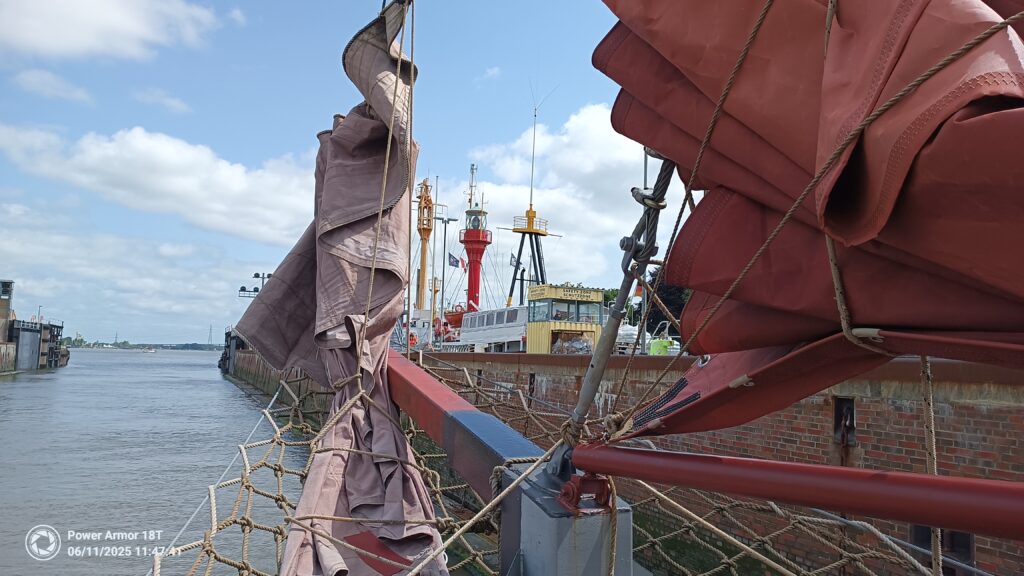 Darüber hinaus waren wir September/Oktober 2023 auf der Werft in Büsum und haben unser Schwimmfähigkeitszeugnis um weitere 5 Jahre verlängern lassen und die dazu notwendigen Arbeiten durchgeführt.